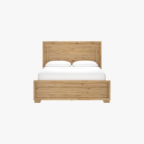 This cool bed and 2 nightstands are sure to win your heart with their daring designer take on modern rustic. The crisp, clean and minimalist-chic profile is enriched with a striking replicated oak grain with thick plank styling and a weathered gray finish for that much more authentic character.