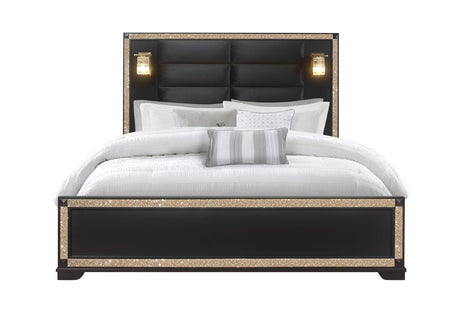 Blake Black-Gold Bed With Lamps-Dresser-Mirror And Nightstand