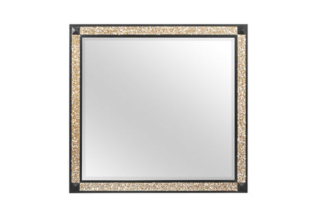 Blake Black-Gold Bed With Lamps-Dresser-Mirror And Nightstand