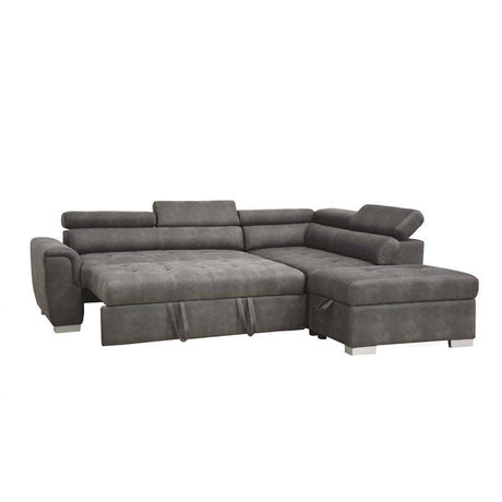 Acme Thelma Sectional Sofa w/ Sleeper & Ottoman in Gray 50275