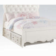 - Create the dream bedroom for your little girl with Edalene collection. Beautiful accents are seen throughout including clear rosette knobs and tapered legs. The bed features a pearl white tufted headboard. With many storage options and details like floral Felt-Lined drawers, the collection is ideal for a child's room. The gorgeous details in each piece make the Edalene collection perfect for your little princess.