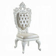 - Sophisticated luxury radiates beautifully in the Vanaheim Dining Room Collection. Fabulous floral design with gorgeous details in each piece makes the collection classical and timeless. Antique white finish gives the surface an alluring feel and elegant touch. A clear glass dining table top allows light to filter into and through the whole table, enhancing the collection's overall design. Upholstery side chairs feature elaborate button-tufted design for adding extra style and comfort to the collection. This extremely extravagant style will make any ordinary dining room appear much more unique.