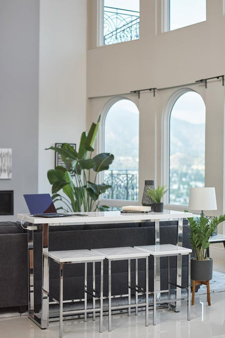 Marmot 4-piece Rectangular Counter Height Set White Marble and Chrome