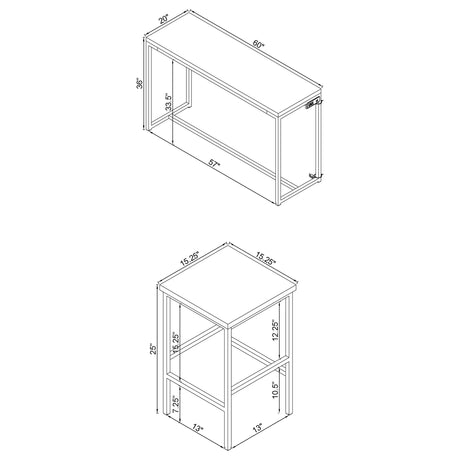 Cavalier 3-piece Square Bar Table Set Dark Elm and Black