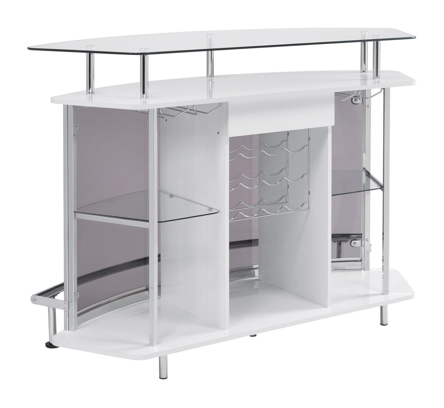 Gideon Crescent Shaped Glass Top Bar Unit with Drawer