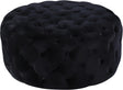 Rest weary legs at day's end atop the welcoming comfort of this Addison black velvet ottoman. This Hollywood-inspired ottoman features deep button tufting from top to bottom for a luxe look and is covered in velvety upholstery for added glam. The vibrant black color makes a bold statement in your space. This substantially sized ottoman also doubles as an extra seat and is padded thickly for supreme comfort.