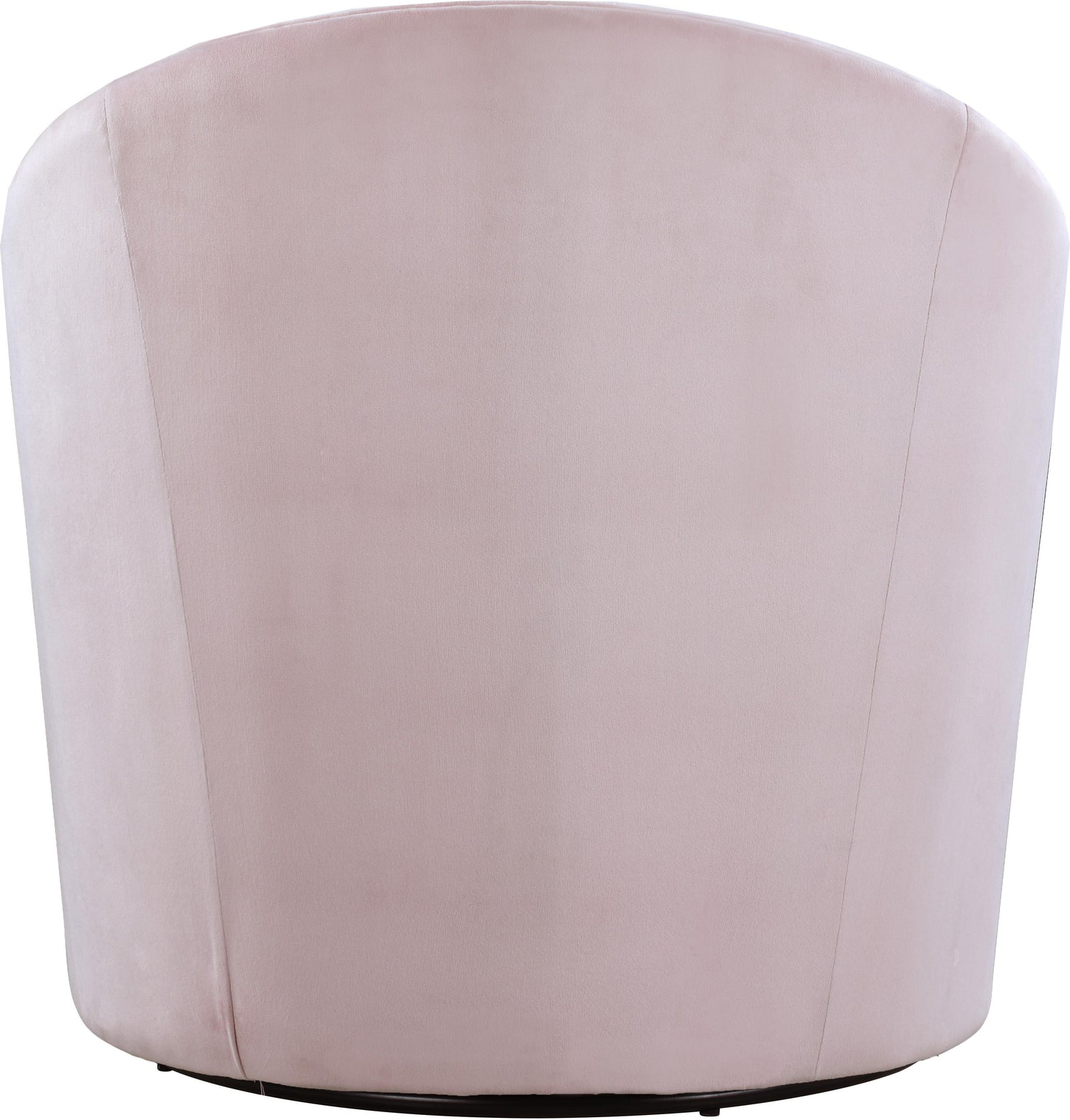 Give your living space a sophisticated makeover with this Alessio Pink Velvet Accent Chair from Meridian Furniture. This swivel base accent chair has luxurious pink velvet upholstery that provides you with a soft, comfortable place to sit while you cozy up with your favorite book or curl up in front of your favorite TV show or movie. Deep button tufting on the inner back adds to its contemporary design, making it the perfect addition to any room in your home.