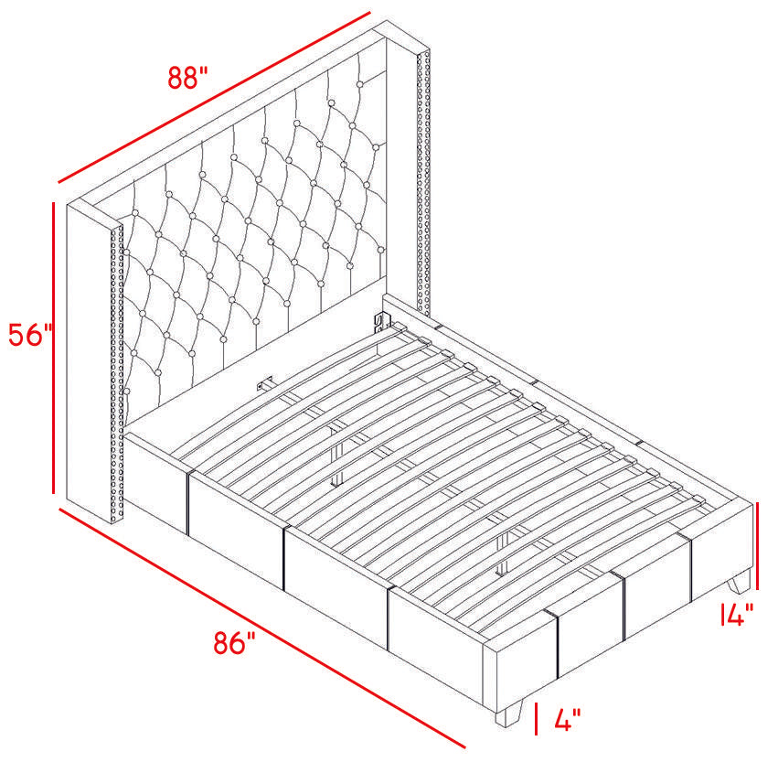 Elegant and eye-catching, the stunning Ashton Bed from Meridian Furniture is the perfect addition to any space. Rich Linen covers the deep tufted design. A beautiful wing bed design is complimented by hand applied chrome nail head details. Strength and beauty is guaranteed with a solid wood frame and legs.