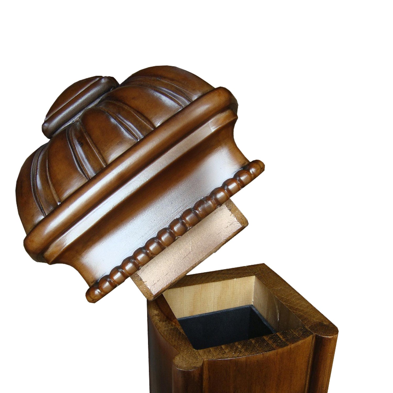 The Barkley Square King Poster Bed features a classic warm oak finish. This commanding piece is adorned with intricate metal work on the headboard and stylish fluted bun feet. Hidden storage features in the bed posts are perfect for keeping your most precious valuable safe. - Four Poster Bed - Hidden Storage in Bed Posts - Spool Beading - Intricate Metal Work on Headboard - Fluted Bun Feet - Warm, Oak Finish - Requires Mattress and Box Spring Solid Hardwood/Plywood Pine Veneer on MDF/Particle Board Pine Wood Moldings Butt Joint Construction Corner Blocked Reinforcements 97 D x 83 W x 64 H, 174lbs. 1 Year Limited Manufacturer Warranty
