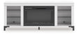- Fireplace insert and shelves feature color and brightness controlled LED lighting