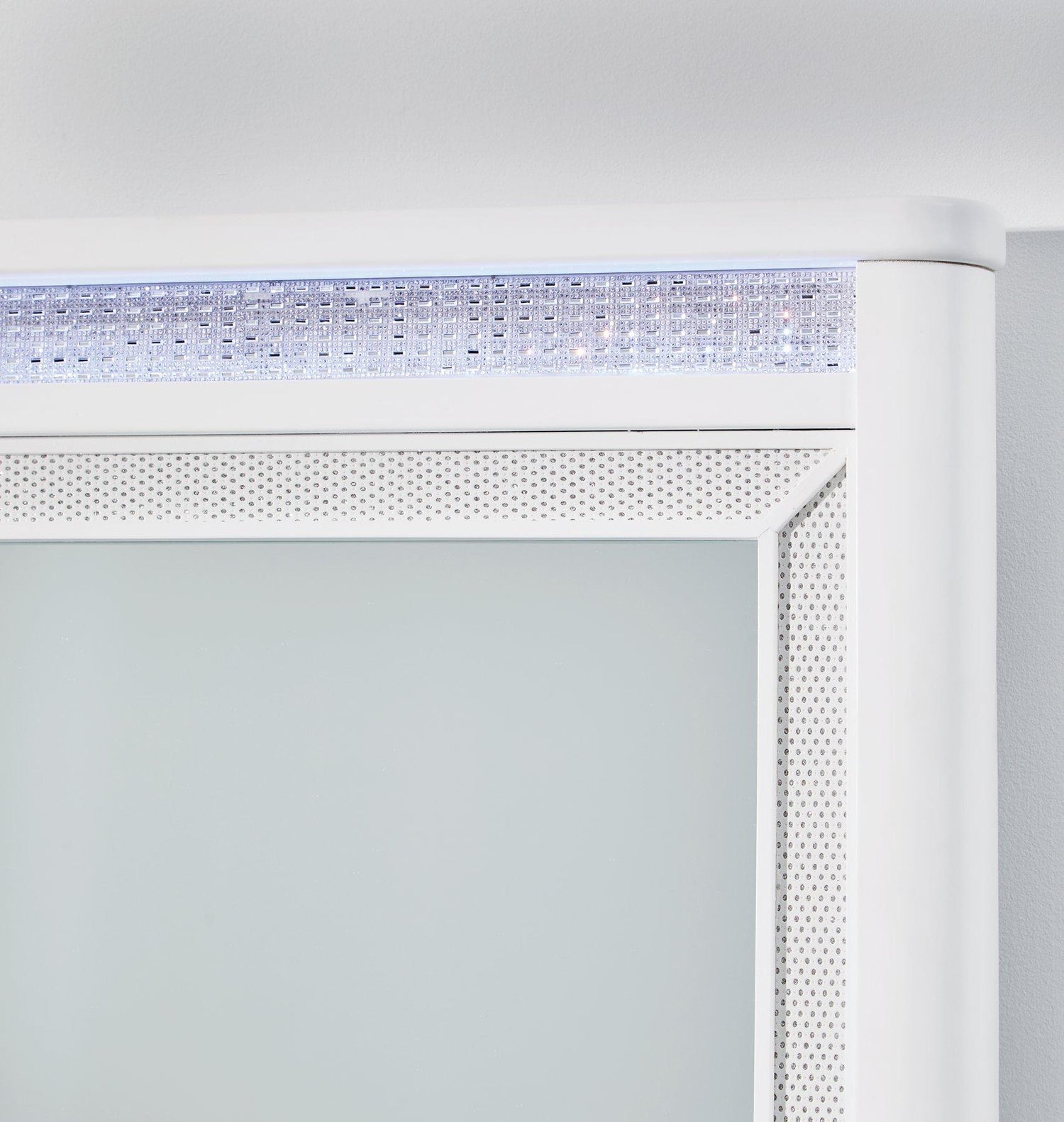 - Drawers with rhinestone frames; textured laminate drawer fronts