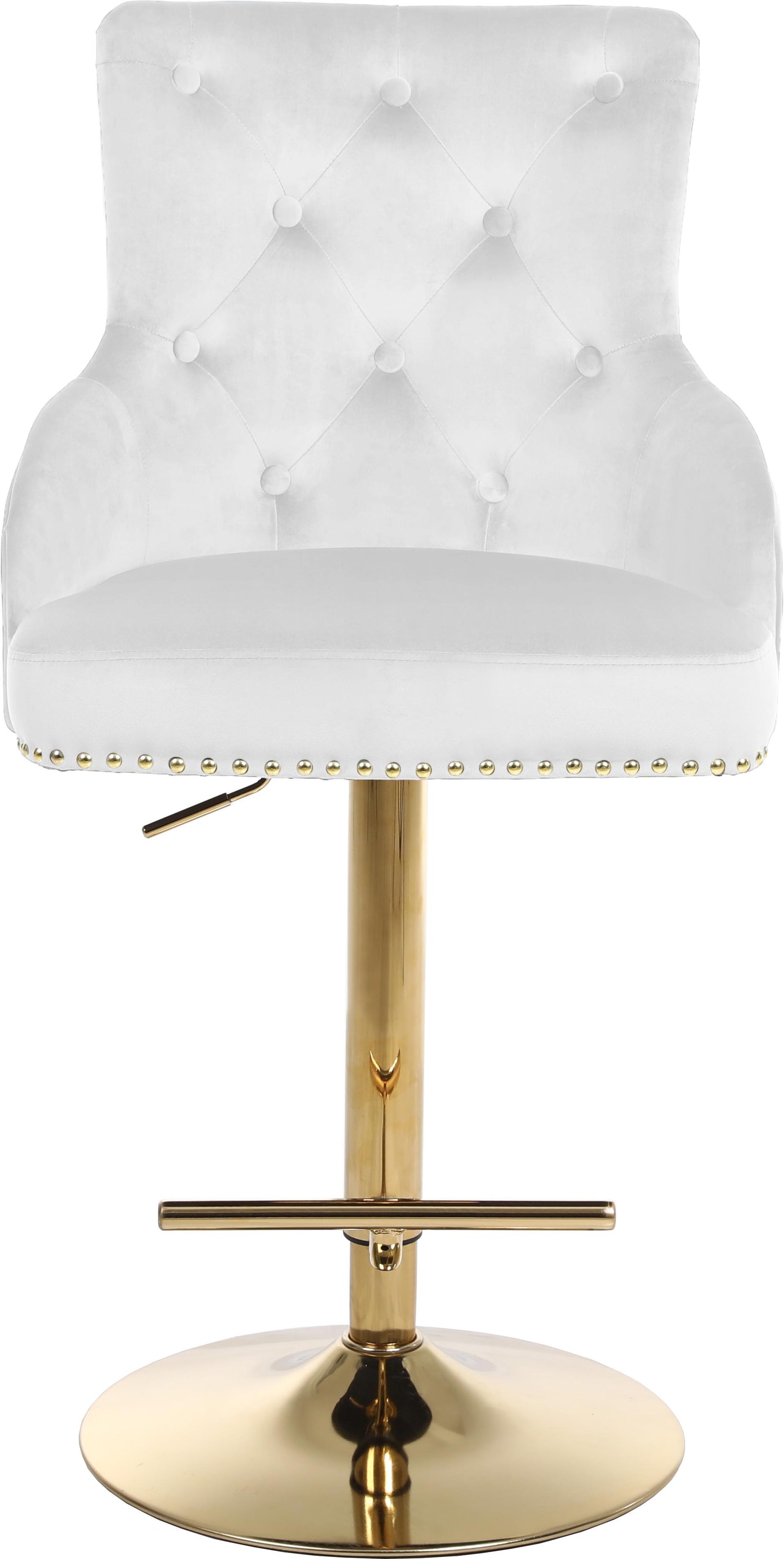 Make this Claude White Velvet Adjustable Stool everyone's new favorite seat. The high-back design supports guests in comfort, while rich velvet upholstery in a crisp white color gives the stool a svelte, modern look. Chrome nailhead trim adds another level of luxury, and the tufted design enables the cushioned back to keep its loft for maximum comfort. Add it to the bar or the kitchen counter to create a modish vibe in your room.