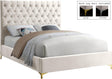 Revamp your bedroom space with this sumptuously crafted Cruz queen bed from Meridian furniture. The star of the show here is the headboard���its tufted with deep button tufts that not only keep its thick padding in place and aloft, but also add a modern, textural look to your space. Sleek cream velvet upholstery feels luxuriously upscale to the touch, and the high headboard and the minimalist platform frame with metal feet add a timelessly contemporary silhouette to your space.