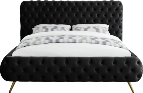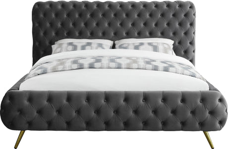 Surround yourself in modern luxury when you add this Delano Cream Velvet King Bed to your bedroom oasis. Sumptuous by design, this bed features all-over button tufting for a look that is nothing short of stunning. This dimensional bed features a heavily padded headboard and side rails, each covered in magnificent-to-the-touch cream velvet for a look that's upscale and simply divine. Metal legs on this bed allow easy clearance for vacuuming, and the bed uses just a mattress, so there's no need for a box spring or foundation, which only adds to its sleek look.