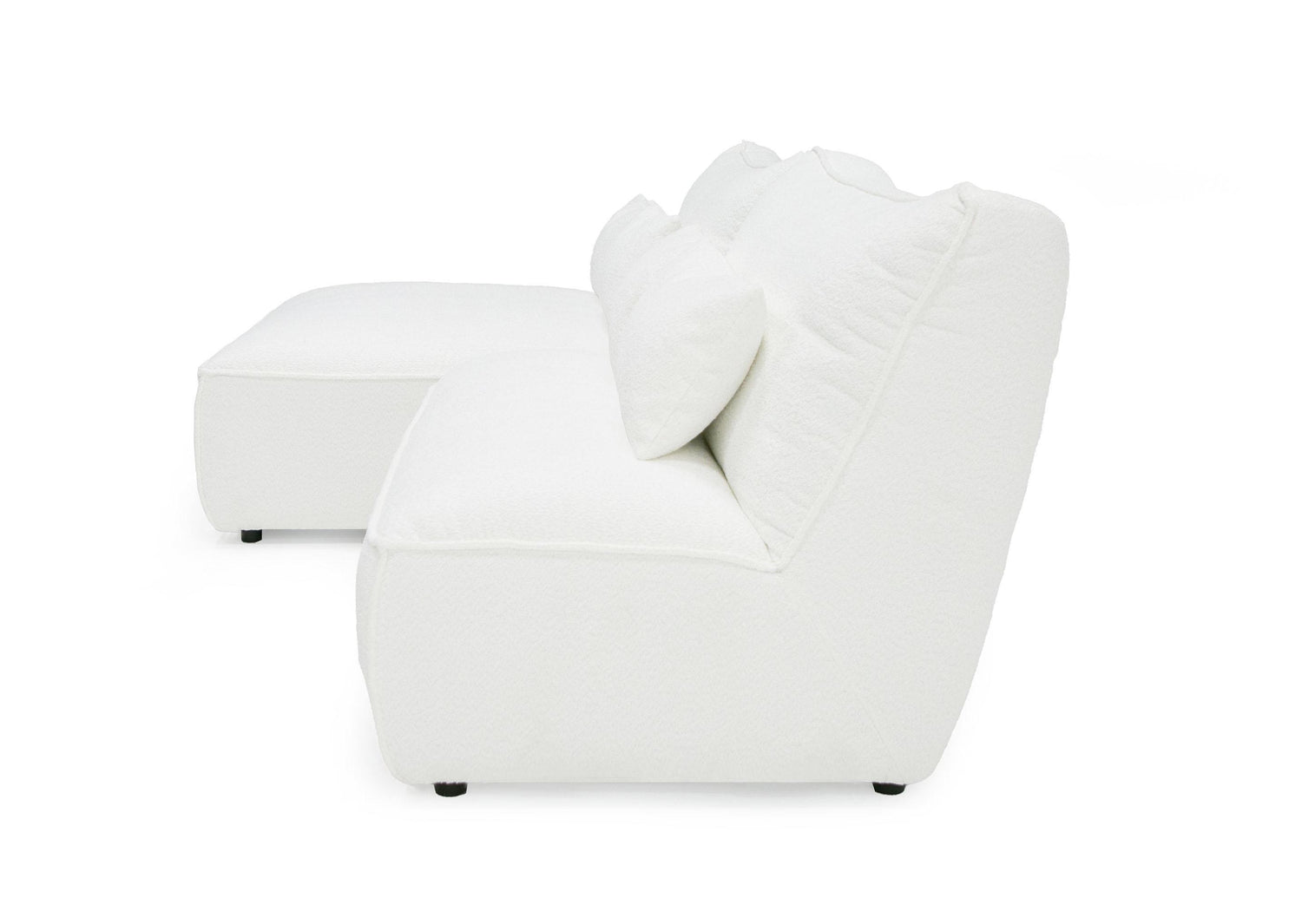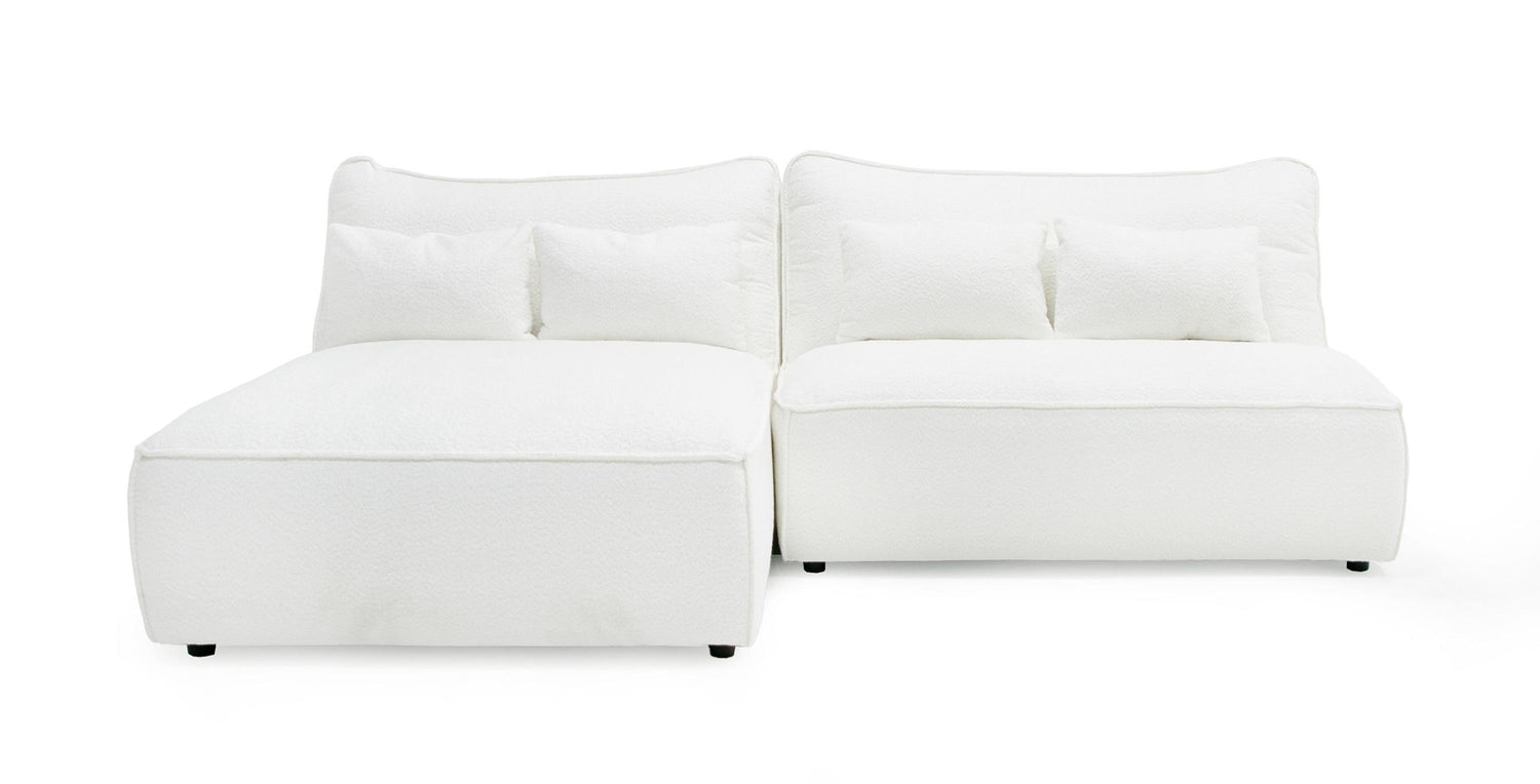 Add the Divani Casa Racine to your living room for an instant luxe feel! The armless chaise, soft Oslo White polyester fabric and foam & waterfowl feather seat cushions are the noteworthy features of the Racine. Also, the modular design allows for the chaise portion to be moved to either the right or left-hand side of the 2-seater sofa.