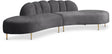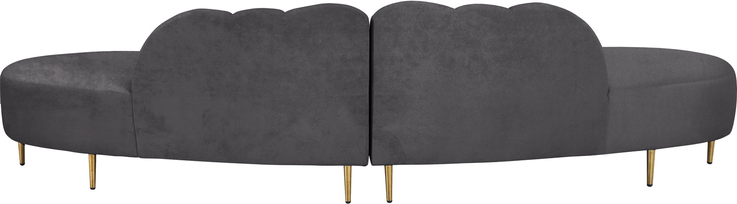 Elevate your interior with the addition of this Divine velvet two-piece sectional. This lovely seating option features soft grey velvet upholstery covering every last inch, ensuring your total comfort as you lounge the day away. The shell shape and deep channel tufting along with the piece���s gold stainless steel legs lend it an uber contemporary feel that is well-suited for your modern d?�cor.