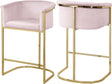 Complement your contemporary home furnishing with this Donatella Pink Velvet Stool from Meridian Furniture. Its curved design and rich beige velvet upholstery provides a comfortable, soft, luxurious seat for you to relax in, while also adding a touch of elegance to your living space. Its gold steel base adds the perfect balance to the stool's soft pink color, in addition to holding the stool up to counter height and providing durable support for years to come.