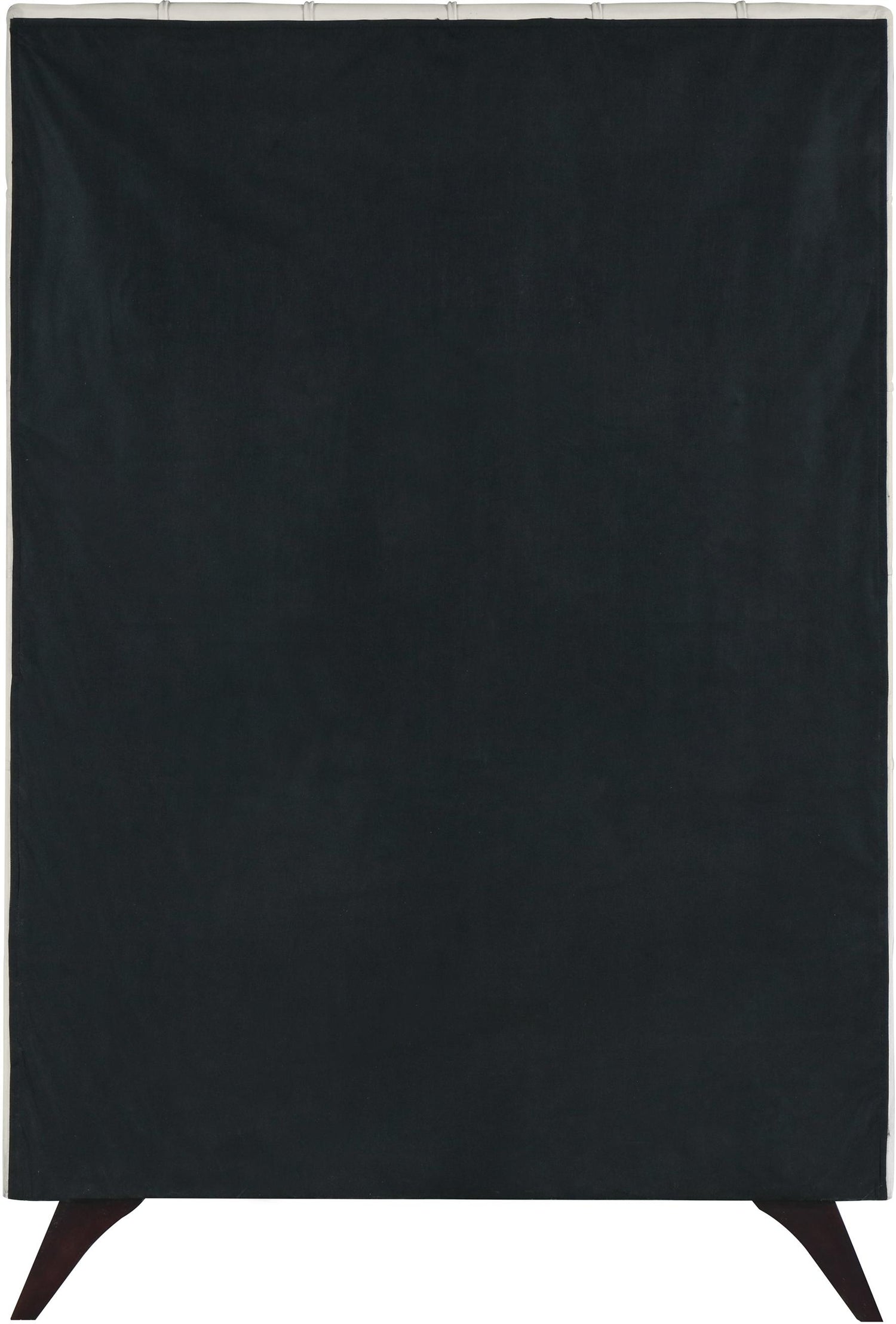 Crawl into this cozy Elly cream velvet twin size bed for a restful night's sleep. The deep button tufting on its tall headboard provides a soft, pillowy surface to lean against for nighttime reading or watching TV. Supported by angled wood legs with an espresso finish, the side rails and footboard are also comfortably padded and upholstered. Contemporary styling ensures that this bed will integrate nicely into any existing d?�cor.