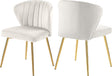 This Finley velvet chair, with its all-over soft cream velvet upholstery, offers elegance and sophistication for your dining room. Designed to elevate your room���s d?�cor in an instant, this seat oozes refinement and beauty with its curved and channel-tufted back and rich gold metal legs. Pair this lovely Finley chair with your favorite contemporary dining table for a seamless presentation.