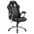 Energize a home office space. This office chair turns contemporary design on its head with an invigorating silhouette. With a silver finish frame, it offers a cool contrast in black leatherette upholstery. Comfortable and ergonomically positive seating makes work tasks a snap. Caster wheels allow for easy mobility.