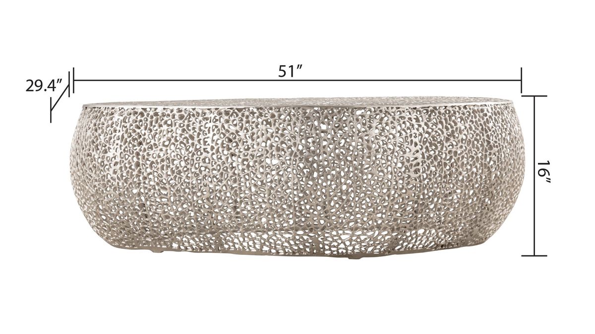 Galaxy Home CT3601-50 Coffee Table in Silver, 29.5W x 51D x 16H, 34.95lbs.