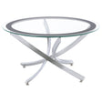 Infuse your living space with the warmth of a contemporary coffee table, designed to harmoniously blend modernity and comfort. The artfully curved, crisscrossing metal base is electroplated for a lustrous finish, supporting a clear tempered glass top encircled by a sleek black frame. This centerpiece reflects light and space beautifully, serving as both a statement of taste and a functional addition to your living room.