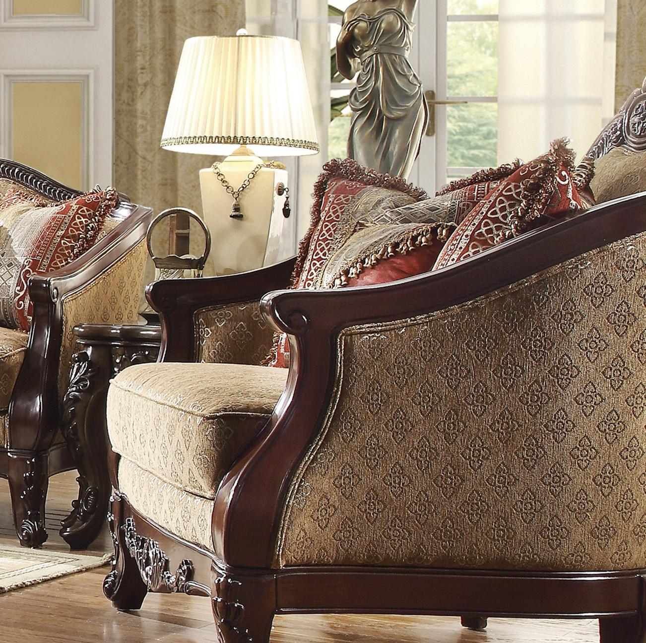 Dimensions: 43-1/2"*41"*46"\n\nFinish: Extra Drk Walnut & SM Hazelnut\n\nUpholstered Material: Fabric\n\nFrame Material: Solid Wood Construction\n\nCubic Feet: 35\n\nCBM: 1\n\nCartons: 1\n\n\n