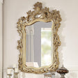 Dimensions: L56*H42 \nFinish: Metallic Bright Gold \nUpholstered Material: N/A \nFrame Material: Wood/Composite \nCubic Feet: 37.66 \nCBM: 1.07 \nCartons: 1