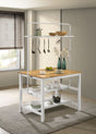 Hollis Kitchen Island Counter Height Table with Pot Rack Brown and White
