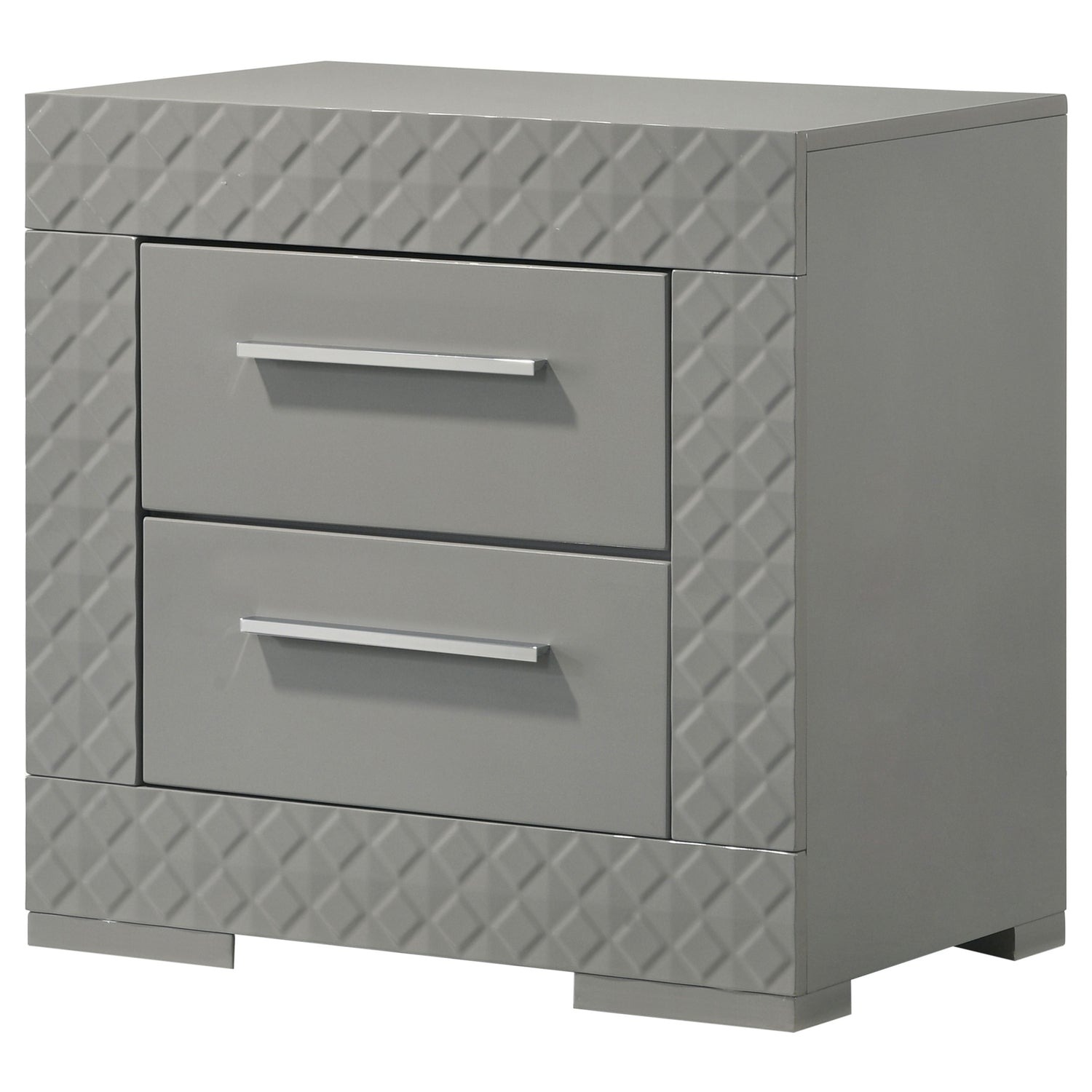 Add a touch of sophistication to your bedroom with this elegant nightstand. Featuring a high gloss finish, it reflects a modern Italian style with a clean, minimalist design. The nightstand includes two spacious drawers, perfect for keeping your bedside essentials organized and within reach. The felt-lined top drawers provide a soft surface for delicate items, while the robust construction ensures lasting durability. This nightstand is a chic addition that complements the contemporary aesthetic of your space.