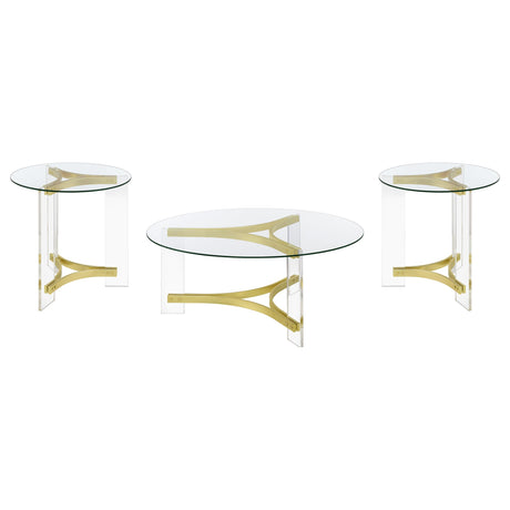 Janessa Round Glass Top Coffee Table With Acrylic Legs Clear and Matte Brass