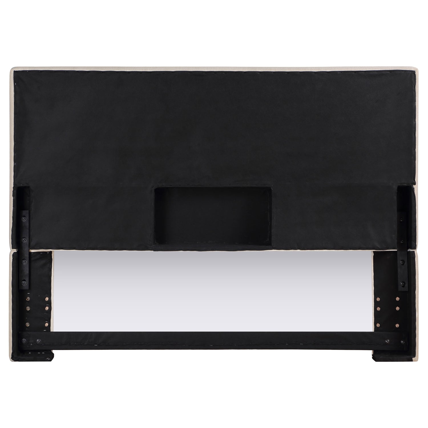 The exemplary and simple style of this classic headboard offers a perfect update to any bed. This upholstered headboard blends clean lines and dimensional upgrades to transform a bedroom into a haven for relaxation. Self-welt construction details add a sleek look to the outer border. Textured sand finish fabric wraps over the headboard, offering a modern look and a light, elegant palette that accommodates a variety of options for matching case pieces, beds, and accessories. Constructed of pine wood.