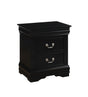 ACME Louis Philippe Nightstand, Black, 21" x 15" x 24"H, 28lbs. The Louis Philippe nightstand boasts engineered wood and veneer craftsmanship for enduring elegance. Brush nickel metal hardware adorns each of the drawer fronts and it's framed by crown molding detail. Features: - Casegood Drawer: Glide Center Metal, Dovetail French Back Only (NO Felt/NO Hidden Drw), Handle: Brushed Nickel - Mirror NOT Beveled - Louis Phillipe Collection Materials: Wood, Wood Veneer, Composite Wood