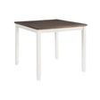 The Martin Brown 5PC Counter Height Dining Set is the perfect addition to your home! This set includes a table and four side chairs. The rectangle table design will make it an easy fit in your home. The chairs feature a ladder back design and an upholstered seat in a chocolate fabric. The wire brush, white finish on the table base and chairs is truly unique, adding instant flair to this set. The walnut table top contrasts well with the white base and will give the updated look your dining room has been craving! - Includes: Table & Four Chairs - Counter Height - Rectangle Table - Walnut Table Top, White Table Base - Ladder Back Chairs - Chocolate, Upholstered Seats - Wire Brush Finish - Ships in One Box MDF Acacia Veneer Acacia Solid Wood Plywood Foam Tongue & Groove Seat Frame Bolts D x W x H, 127lbs. 1 Year Limited Manufacturer Warranty