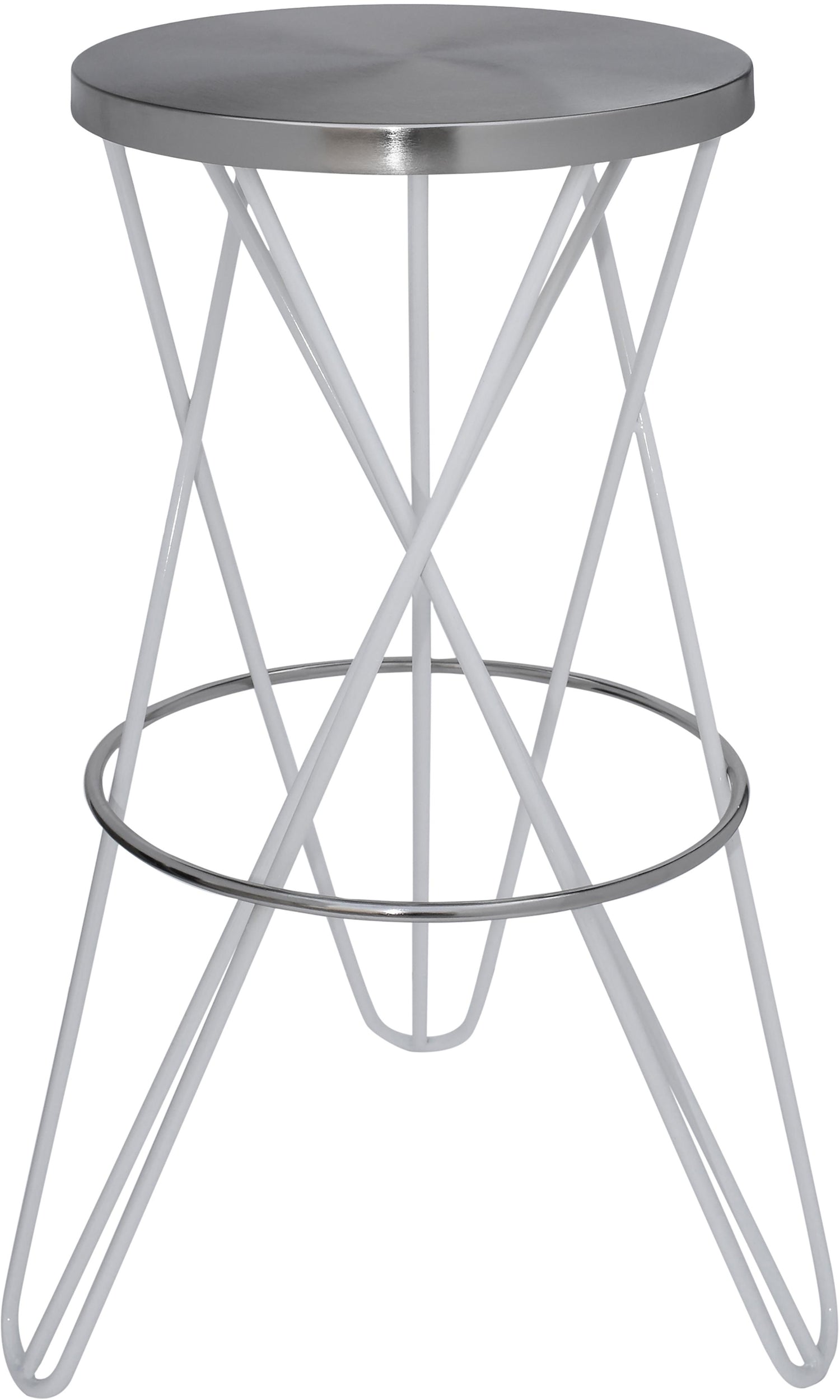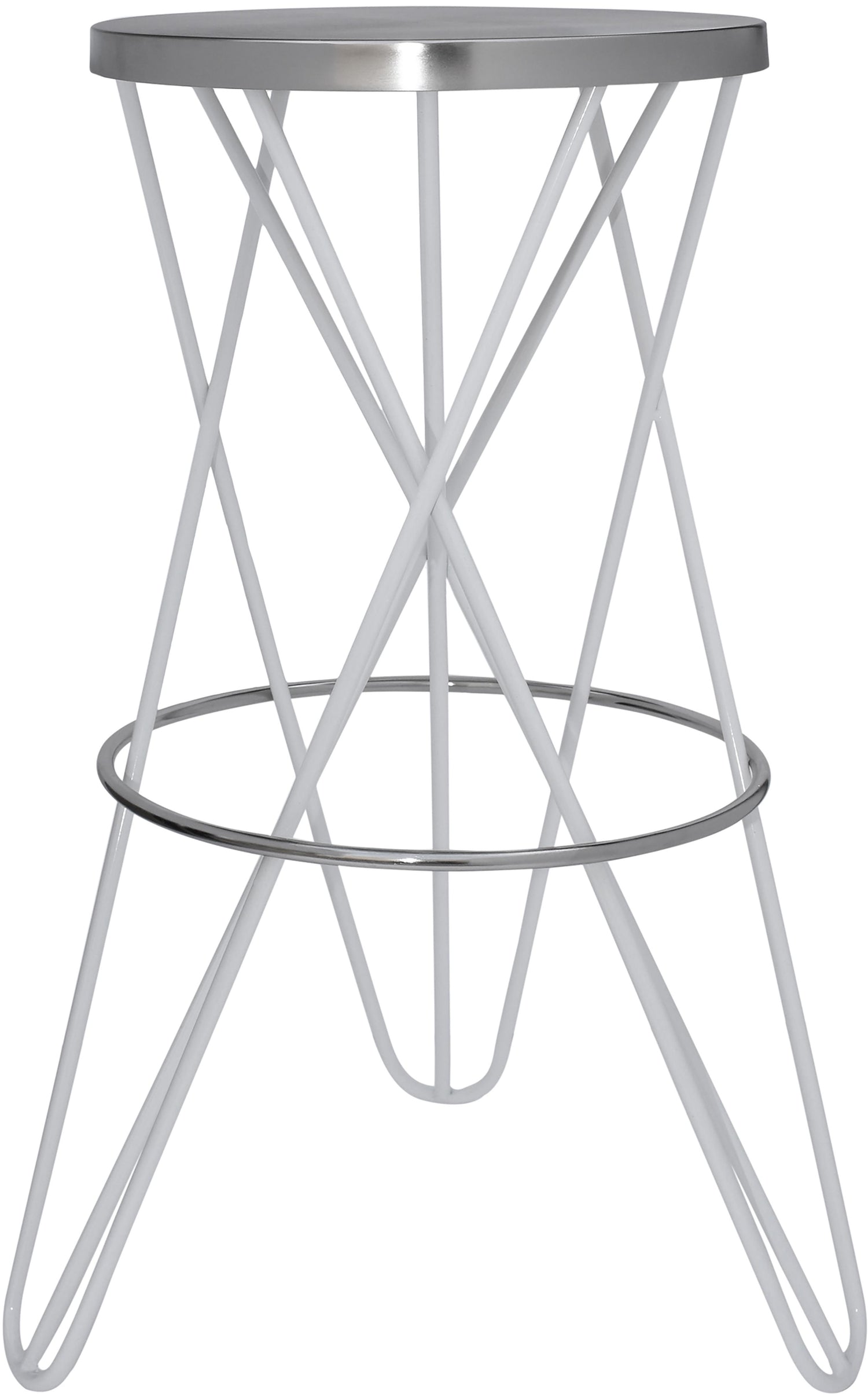 - Brushed Silver Iron / White Powder Coated Bar Height Stool