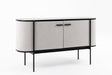 The Hobart Buffet is a must for every modern house. The circular black top is finished elegantly in a contemporary and industrial matte black finish. To contrast the texture of the frame, the modestly curved cabinet is covered in a cream cloth. It will look stunning in any modern or industrial-style household with its chic silhoutte and classic use of materials.