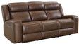 New Classic Furniture Atticus Dual Recliner Sofa with Power Footrest in Mocha