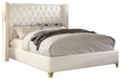 Elegant and eye-catching, the stunning Soho Bed from Meridian Furniture is the perfect addition to any bedroom. Rich Leather covers the deep tufted design. A beautiful wing bed design is complimented by hand applied gold nail head details. Strength and beauty is guaranteed with a solid wood frame and stainless steel legs that feature a gold finish.