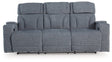 Chill-out time has never looked better. This power reclining sofa's adjustable headrest ensures a perfect view of the TV no matter how far back you recline, while the extended ottoman takes your comfort to the next level. A drop-down table is decked out with reading lights and charging features. Plush yet practical Next-Gen Nuvella™ performance fabric and ambient lighting complete the theater-style experience. It's time to relax, nap or binge-watch in the best seats in the house.