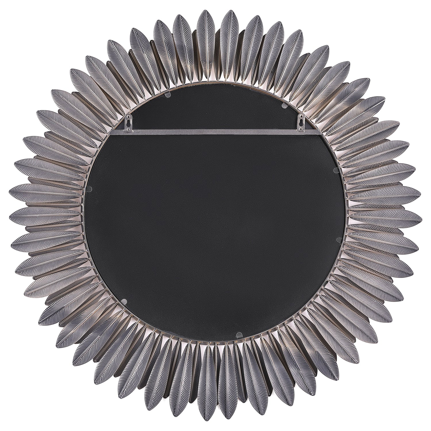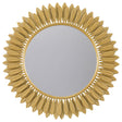 Instill the freshness of springtime in your living area or bedroom decor with a modern wall mirror. Offering sculptural presence, it boasts a center of round mirror glass. The frame is a double layer of delicate petals, introducing a floral element that creates cheerful energy in any setting. The mirror boasts a gold finish, evoking yellow daisies or bright sunflowers. Metal construction graces the frame, while MDF backing adds strength to 4mm thick mirror glass.