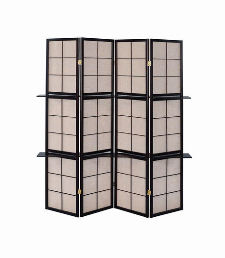 Iggy 4-panel Folding Screen with Removable Shelves Tan and Cappuccino