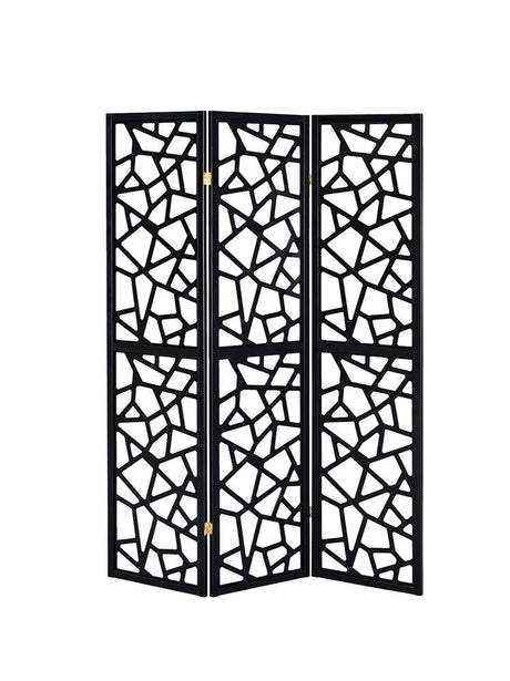Nailan 3-panel Open Mosaic Pattern Room Divider Black