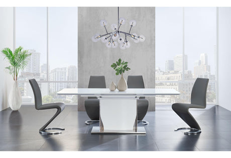 Crown Mark Klina Glam 2-Leaf Dining Table in Light Gray