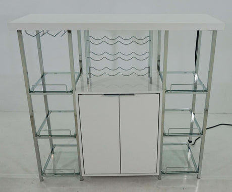 Gallimore 2-door Bar Cabinet with Glass Shelf High Glossy White and Chrome