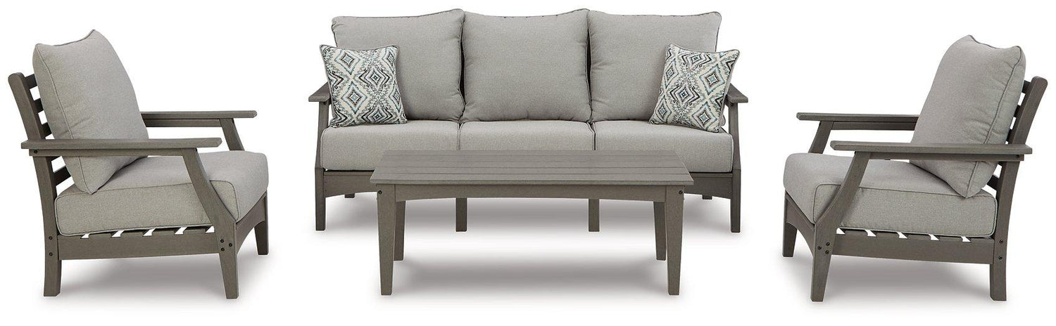 It’s the dawn of a new day for gray. Embrace the style trend with this outdoor conversation set. Each piece is crafted of HDPE material, combining the exceptional durability and weather resistance you need with the ‚wood look‚ you love. The coffee table and comfortably cushioned seats take alfresco living to a whole new level. A slatted table top infuses a plank-style, farmhouse-inspired touch and naturally sheds rainwater. Rest assured, the thick cushions on the sofa and lounge chairs are wrapped in Nuvella® high-performance fabric that’s fade-resistant, stain-resistant and a breeze to keep clean.