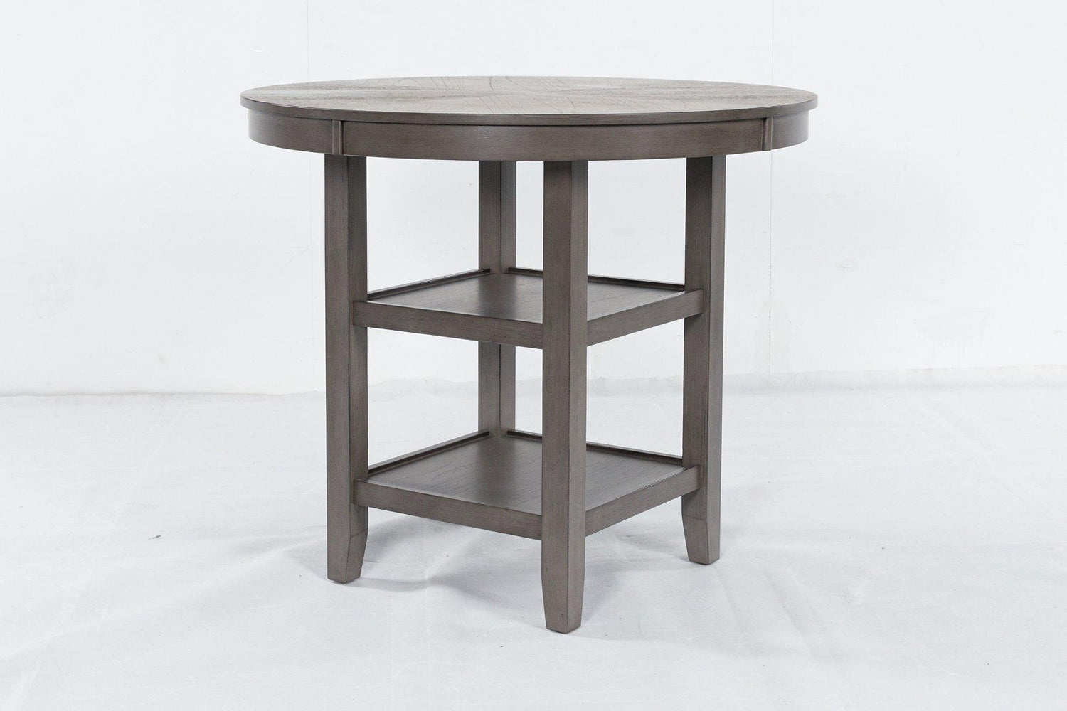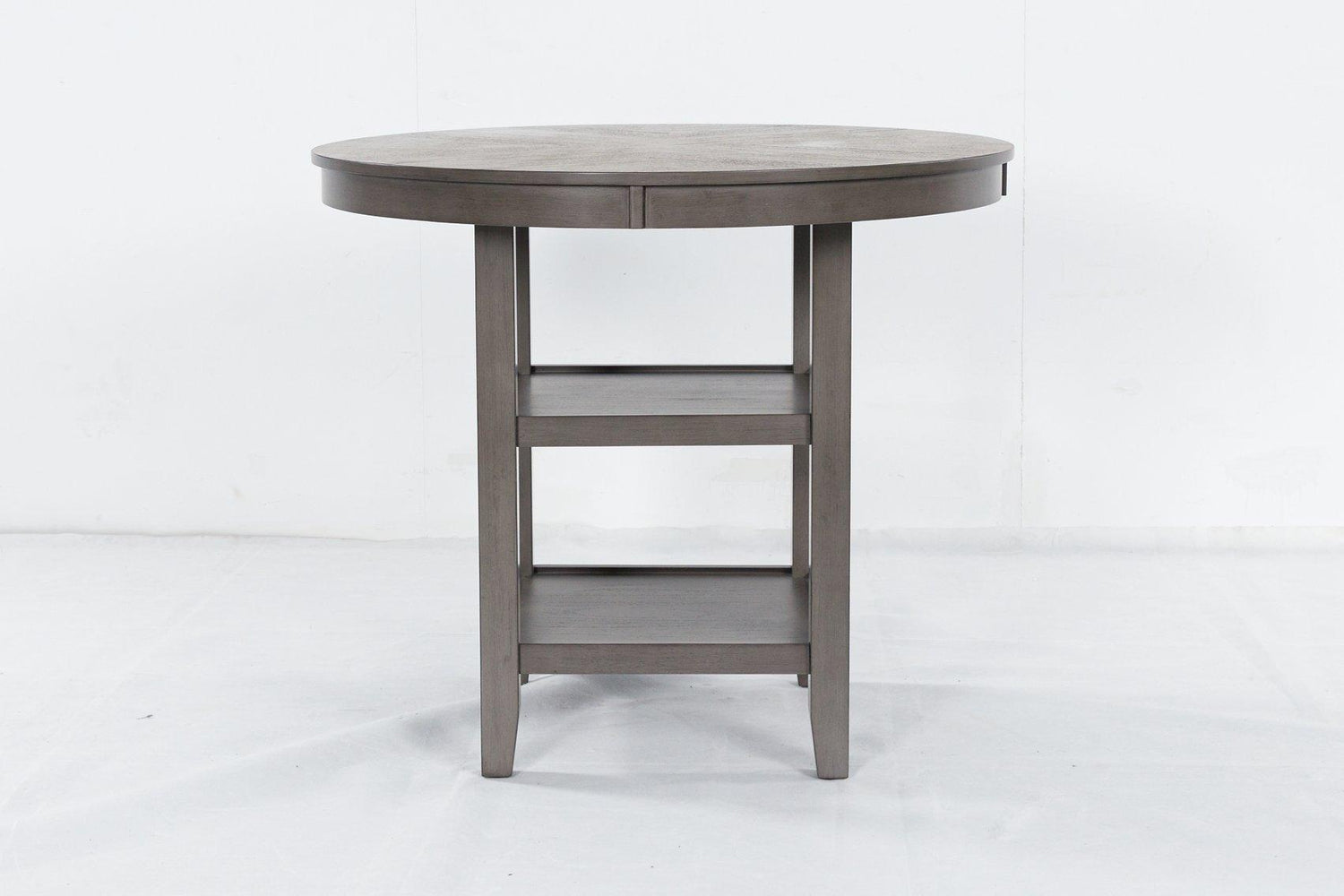 Can’t decide between classic and contemporary? Embrace the beauty of transitional style with this casually sophisticated counter height dining table and bar stools. A clean-lined profile and modern light gray finish merge with textured upholstery to create a timeless yet on-trend look when guests gather. Discreetly placed shelves simply make great storage sense.