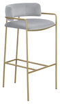 Comstock Upholstered Low Back Stool Grey and Gold is backordered and will ship as soon as it is back in stock.