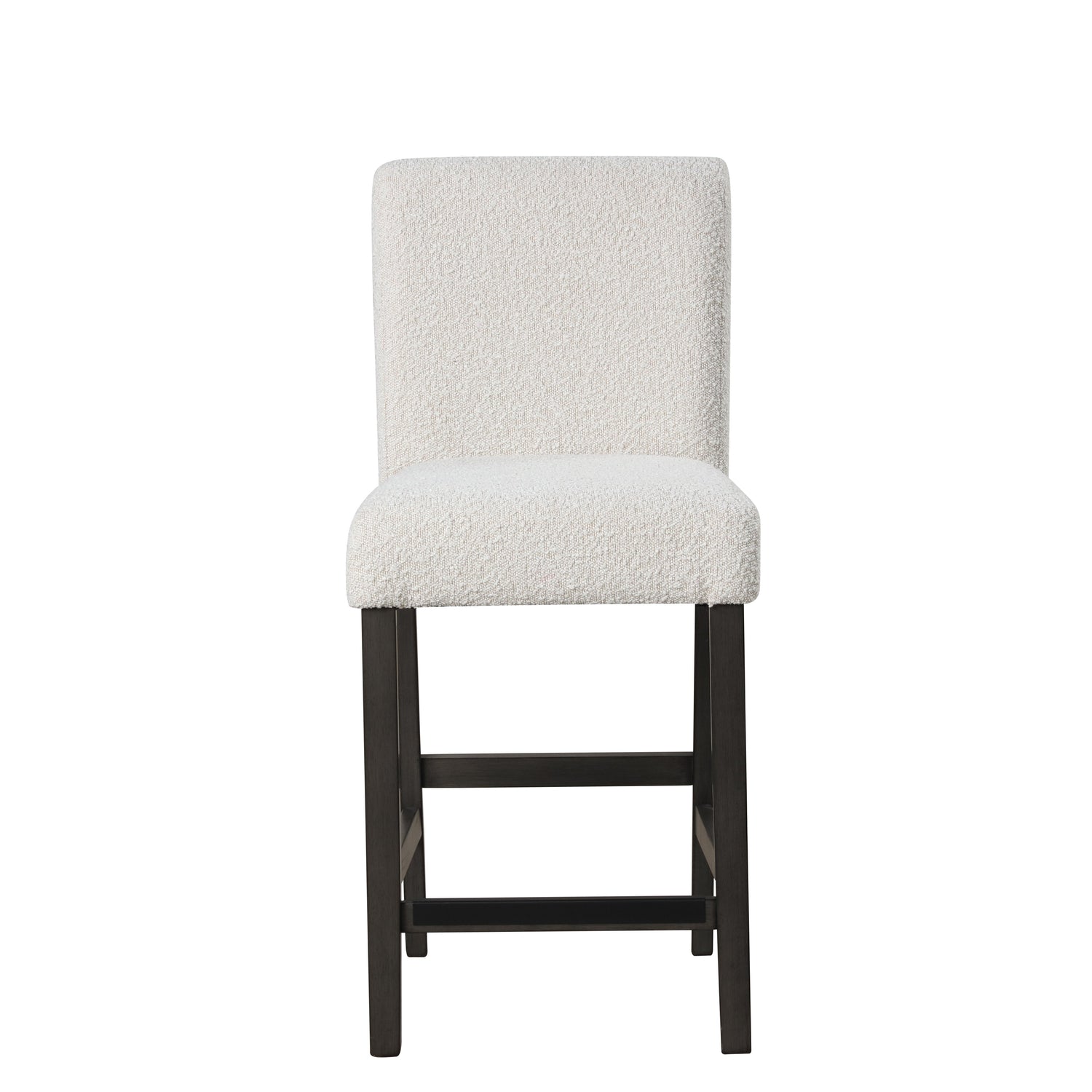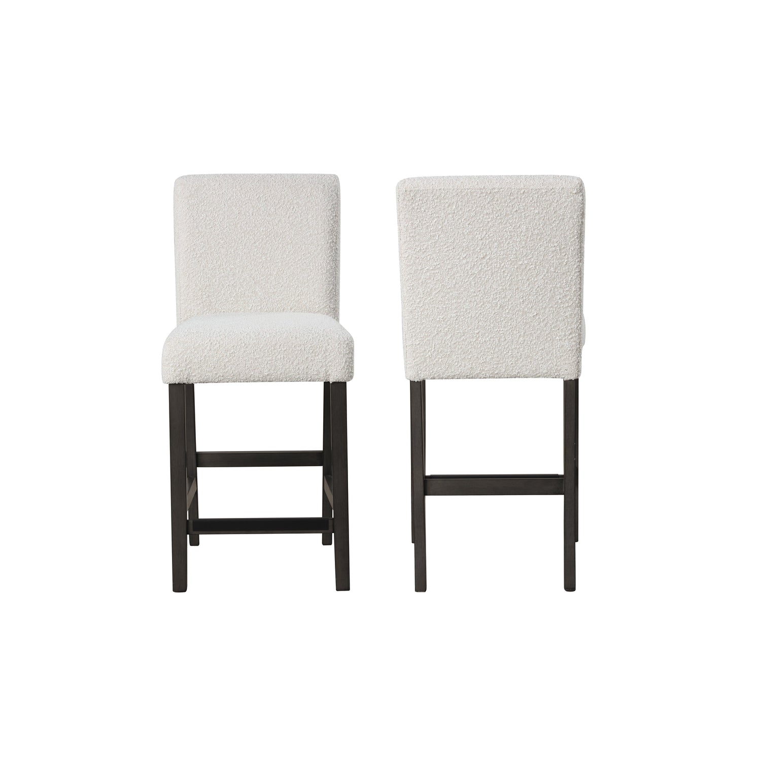 The High Line Upholstered Counter Chairs in White combine durability, comfort, and style to enhance any living space. Each set includes two counter dining chairs, expertly crafted from solid Acacia and Rubberwood, along with high-quality manufactured woods and Birch veneers, ensuring durability and stability. The luxurious bouclé fabric offers exceptional durability, making these chairs ideal for frequent use. The unique looped texture provides a plush, comfortable seating experience, adding both elegance and longevity to your dining area. Perfect for dining rooms, home offices, or as accent chairs in living spaces, these chairs add both functionality and aesthetic appeal. The High Line Upholstered Counter Chairs seamlessly blend into various interior designs, making them a versatile and stylish addition to any home.