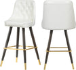 Bring home a classic look with this Portnoy faux leather bar/counter stool. This elegant stool offers traditional deep button tufting on its seat back for a sophisticated design that adds refined beauty to your home bar or counter. The soft white faux leather is rich and supple to the touch and looks authentic. The stool rests on espresso wood legs and has a gold footrest and hardware for an elegant finish.