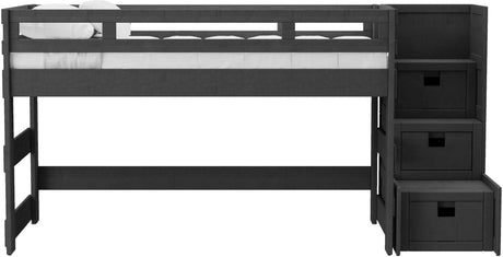 Elements International Cali Kids Twin Junior Loft Bed with Staircase in Sleek Gray